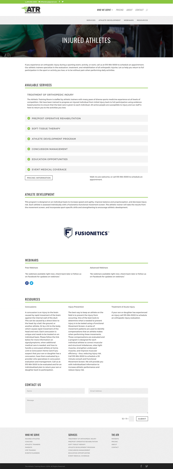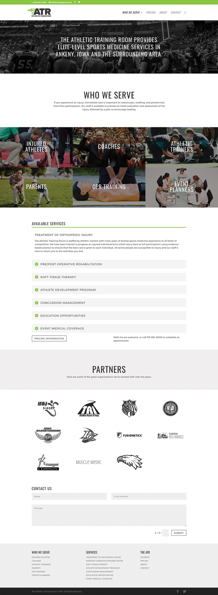 Tasked with building the brand identity for The Athletic Training Room (The ATR) from the ground up, I delivered a suite of assets including logo design, print collateral, and web development. I further defined the brand’s aesthetic through original on-scene photography. What began as a local identity project has evolved into a long-term partnership; I continue to help manage the brand today as The ATR expands its national footprint through franchising.